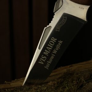 Znakowanie broni niezmiennie od lat jest usługą wykonywaną przez nasz zakład grawerski. Rytowanie kolb, nanoszenie tekstur czy sygnowanie nazwiskiem lub cytatem może być wykonane przez naszą firmę na dowolnej powierzchni. Drewniane uchwyty stanowią idealny materiał do nanoszenia wyraźnego, klasycznego grawerunku, niemniej popularne jest grawerowanie powierzchni metalowych. Grawerowanie broni nie kończy się na broniach palnych. Realizujemy również zlecenia naszych klientów na znakowane szable, noże myśliwskie czy tabliczki opisujące zabytkowe już egzemplarze broni białej.