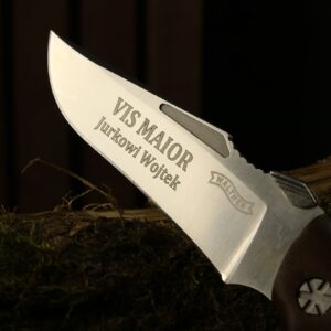 Nasz zakład grawerski oferuje znakowanie noży i scyzoryków zarówno na ostrzu, jak i rączce według Twoich wytycznych. Jeśli chcesz umieścić wzór, logo, inicjały lub dowolną dedykację na ostrzu noża grawerowanie laserowe pozwoli uzyskać czytelny, nieścieralny i trwały grawerunek. Na rączkach drewnianych możliwości znakowania są dokładnie takie same, a takie miejsce personalizacji jest szczególnie często wybierane w przypadku składanych scyzoryków. Szczególną popularnością cieszą się produkty marki Victorinox, a grawerunek idealnie podkreśla szwajcarską jakość wykonania tych scyzoryków.